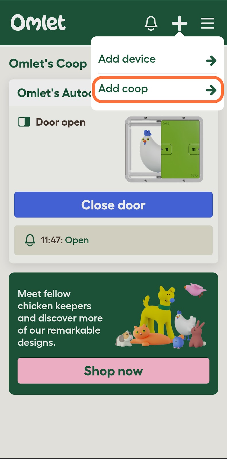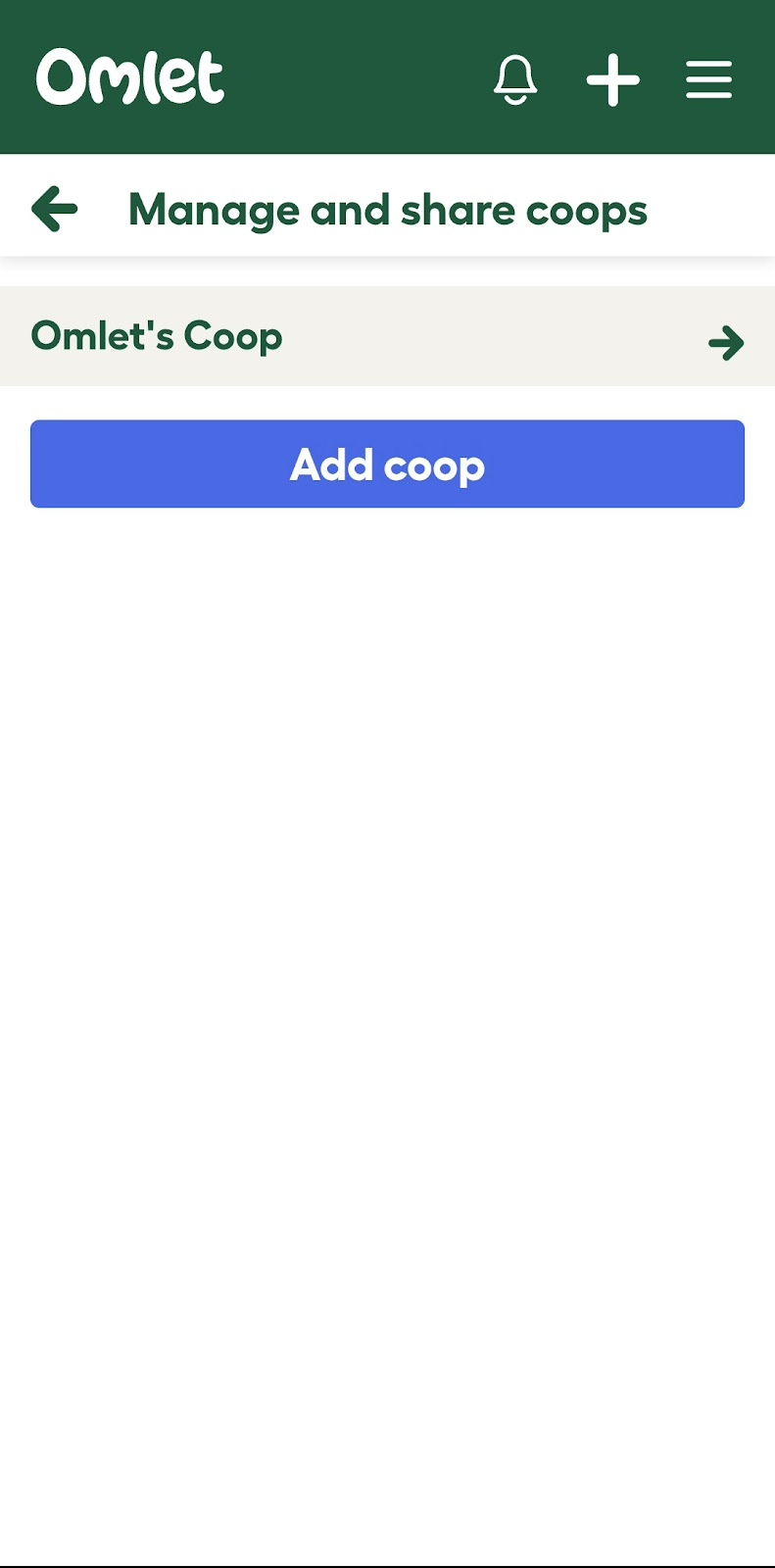 Step 2 - Select "Add coop" then enter a name for your new coop.