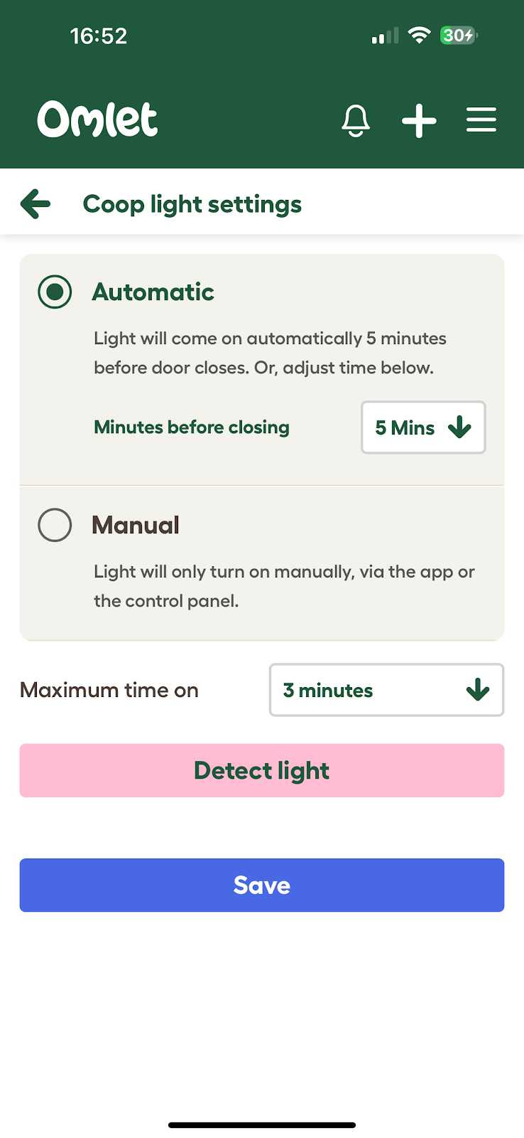 Step 2 - Select Coop Light settings from the following menu. From here, you can program when your Coop light comes on and off.