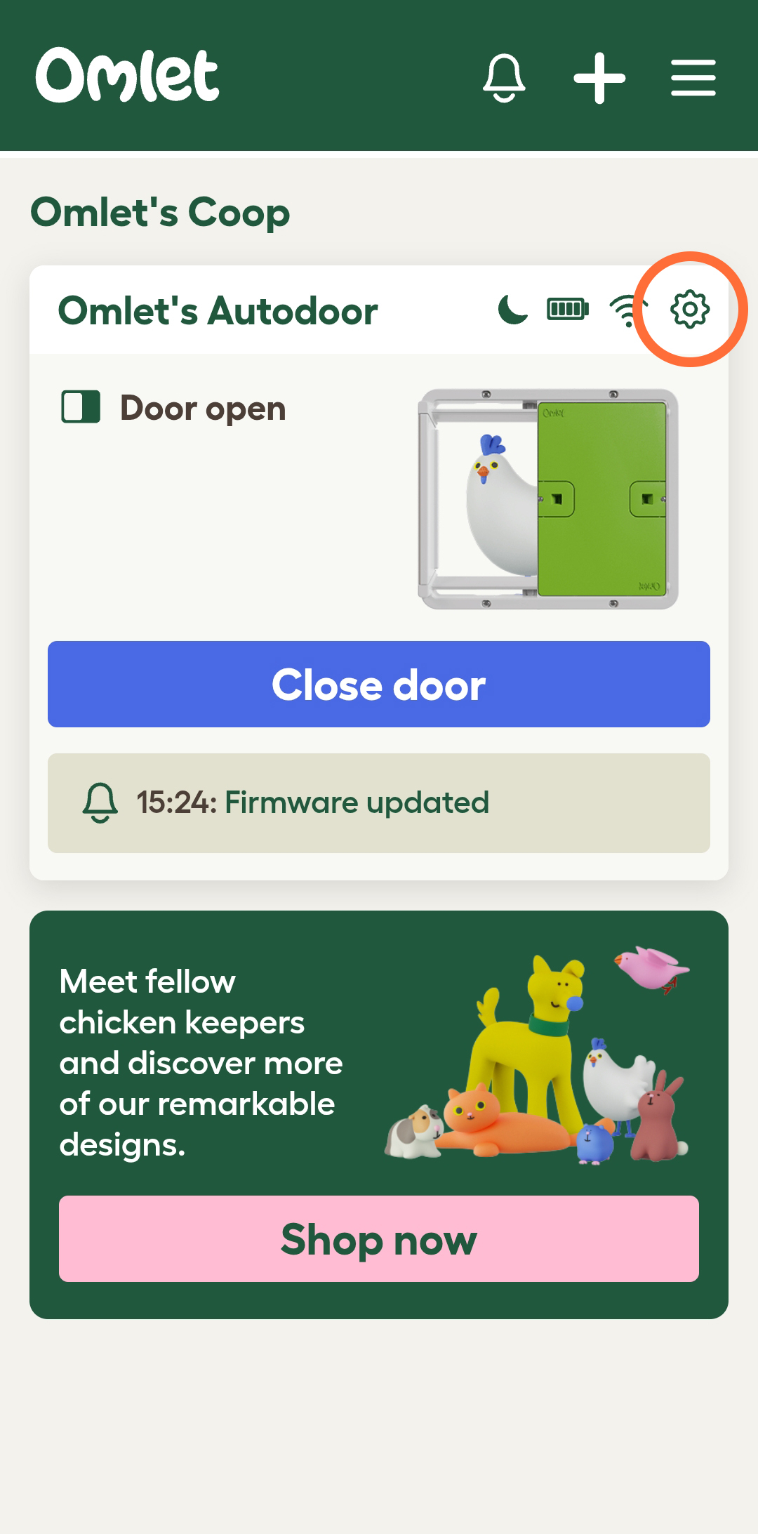 Step 1 - Within 5 m of your control panel, select the settings icon for your Autodoor.