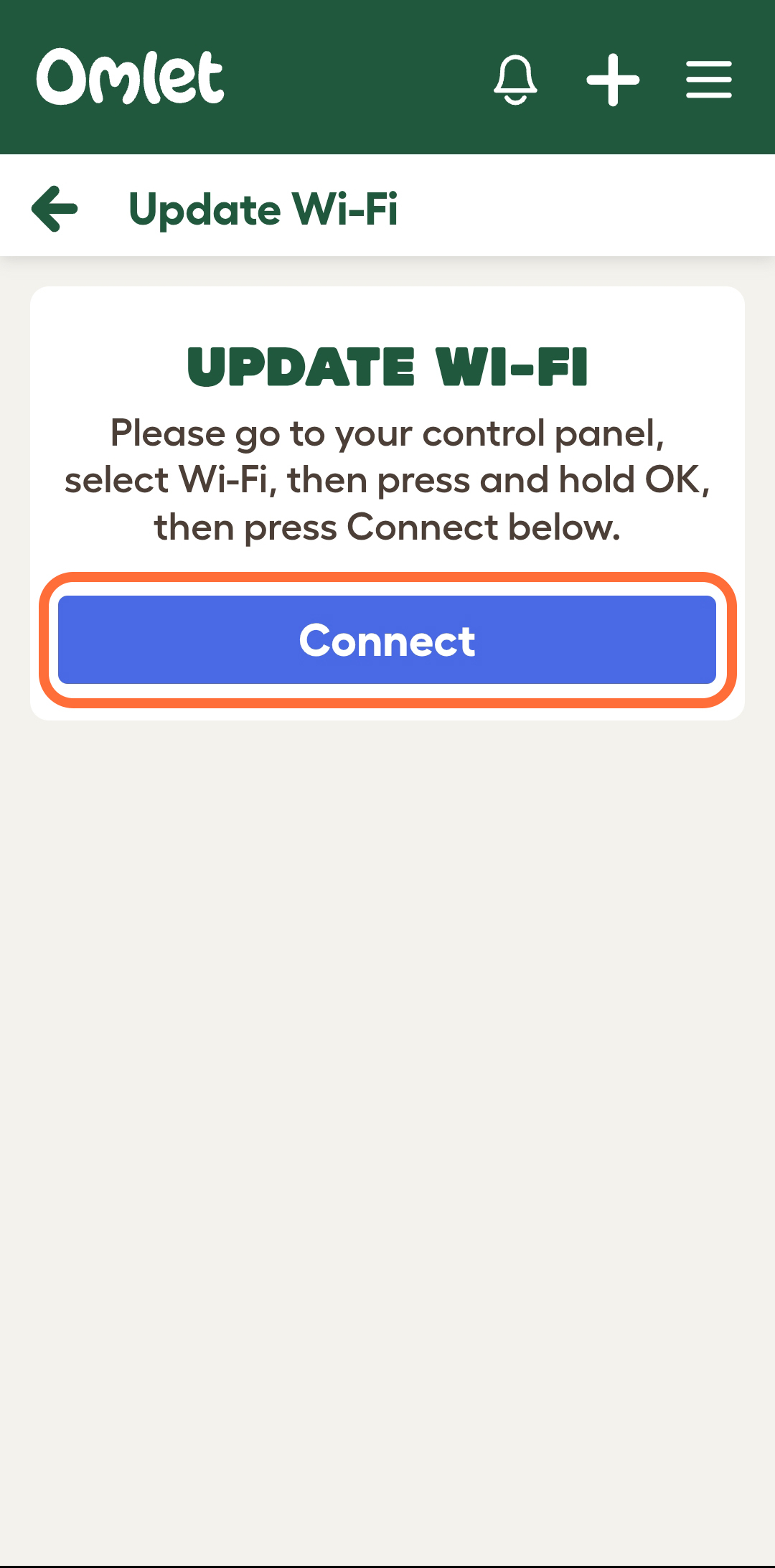 Step 3 - Click connect to begin the Wi-Fi update process. Your control panel will restart and say “Discovery mode”.