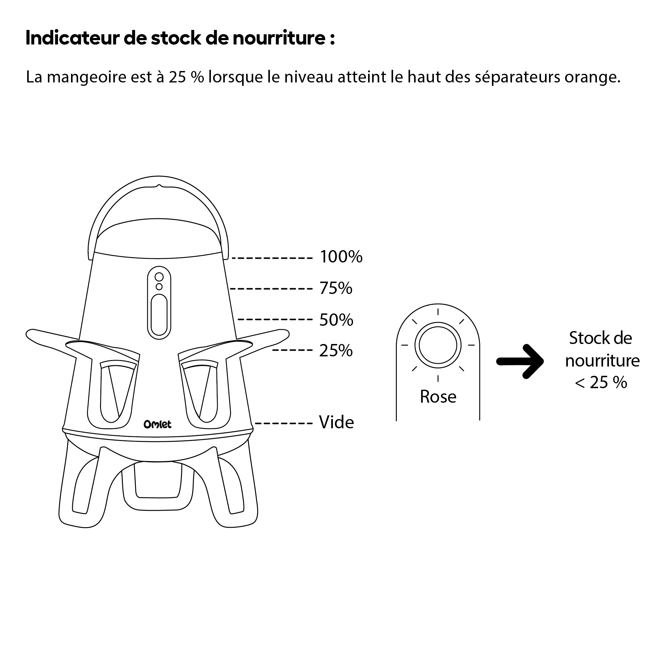 En connectant votre mangeoire intelligente à l’application Omlet via le Wi-Fi, vous bénéficiez d’un suivi complet du niveau de nourriture. En effet, un capteur logé sous le rebord de la mangeoire fournit des mesures régulières qui sont transmises à l’application lors des vérifications effectuées toutes les heures.