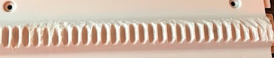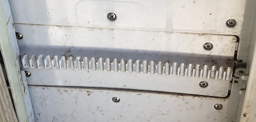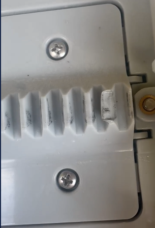 Step 2 - Check the gear rack is flat, clean and has no damaged teeth. The gear rack is visible on the back of the door.
