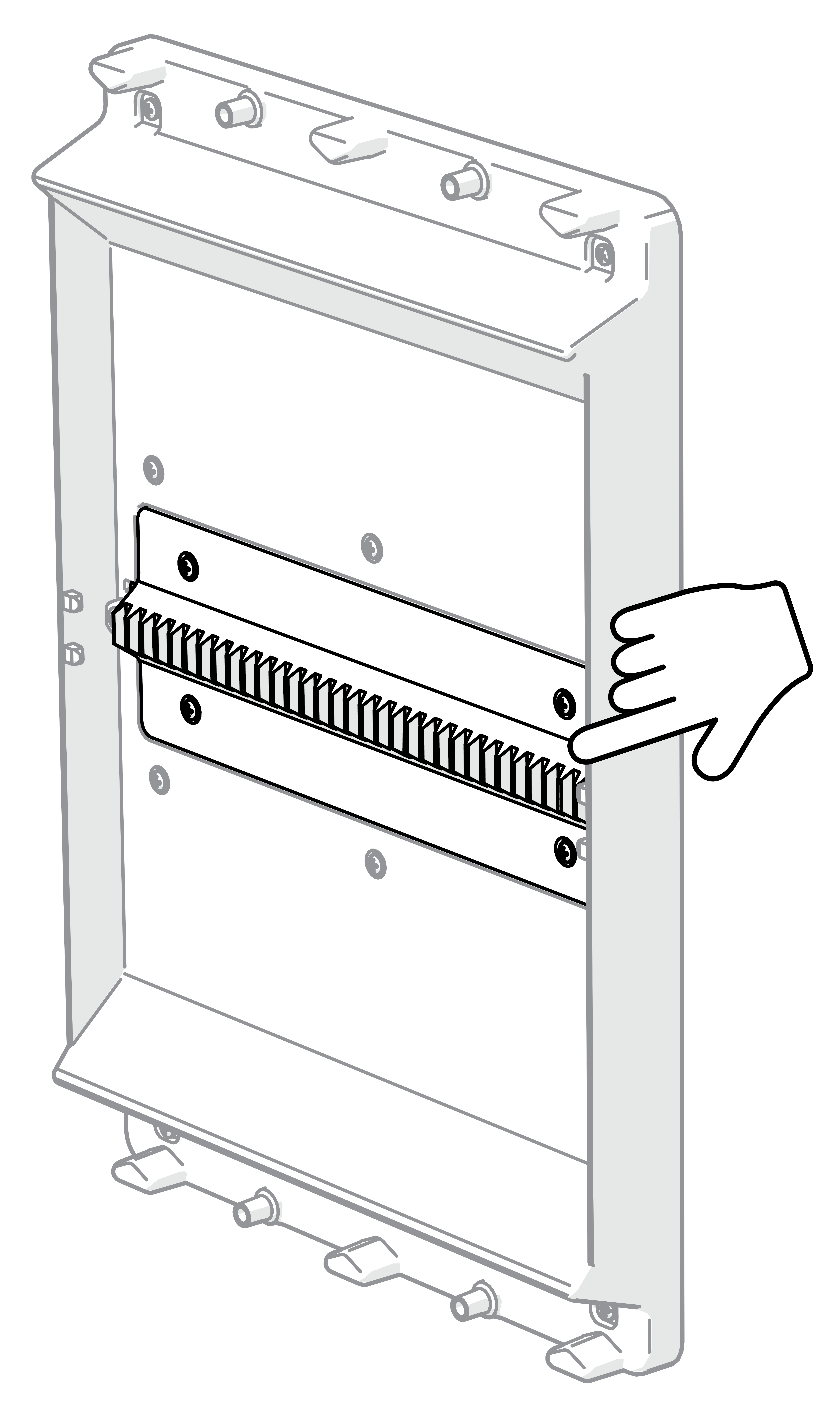 The gear rack is located on the back of the door. It looks like a bumpy track, on which the motor runs and pushes open the door.